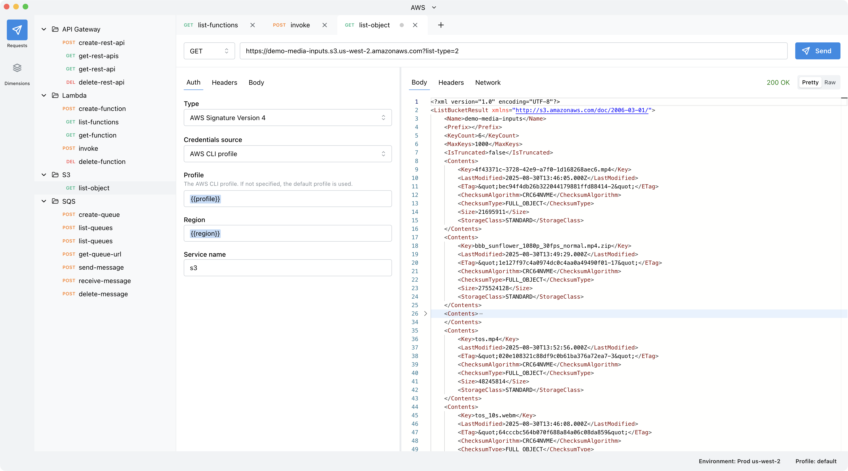 Get credentials directly from AWS CLI profiles. No more storing AWS credentials in requests and environments making projects easily shareable.
